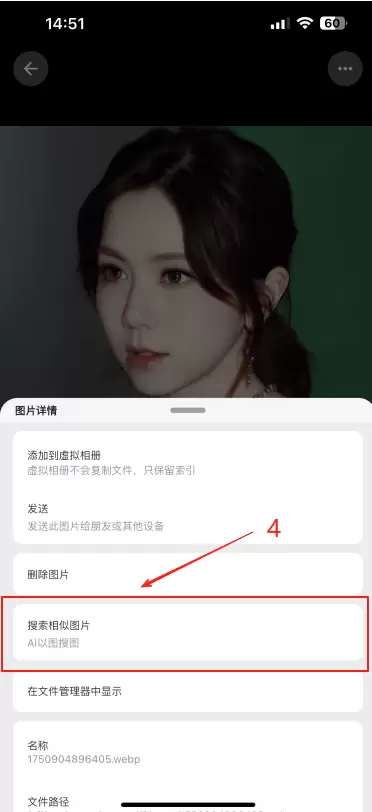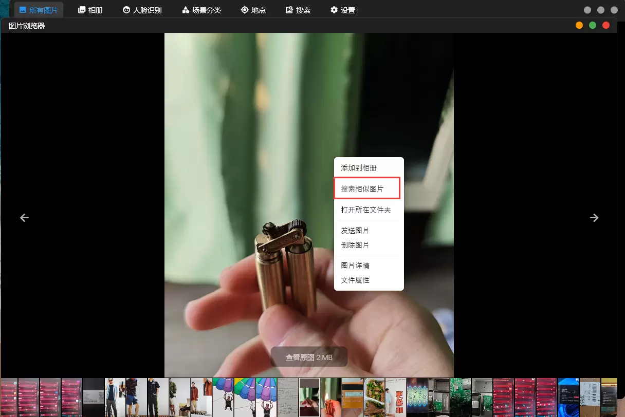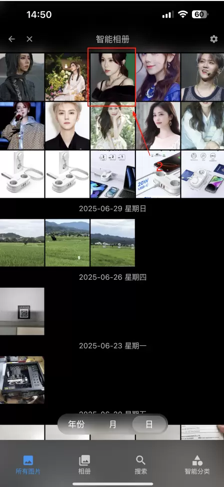 2.进入到智能相册内后,选择一张你想要搜索的相片,并点击