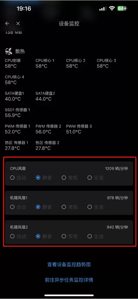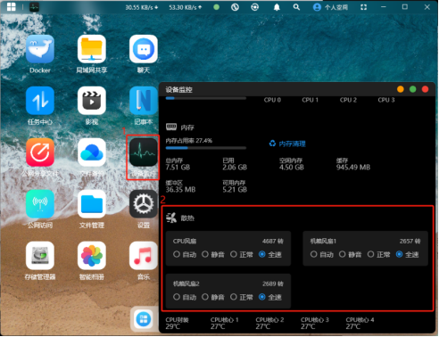 向下滑动找到“散热”的显示,即可手动调节风扇转速。
