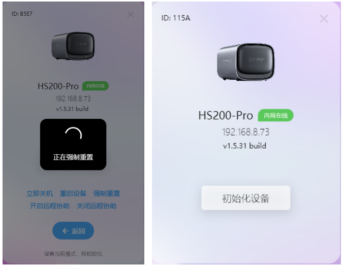 (3)输入正确的SN后,会进行重置,重置完成后需要重新绑定初始化设备。