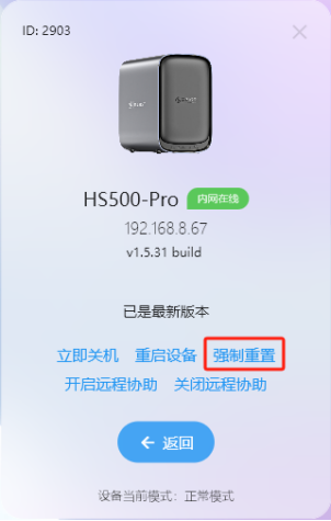 (1)在设备登录界面,点击头图进到局域网高级设置界面,点击“强制重置”可完成对设备的重置操作。