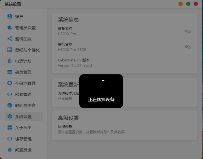 (3)设备将进入抹除数据状态,抹除完成后会解绑此机器。