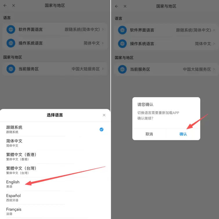 软件界面语言,我们以英语为例,点击确认,等待完成