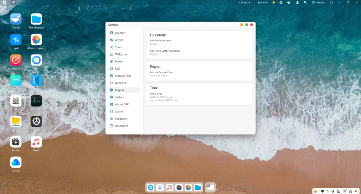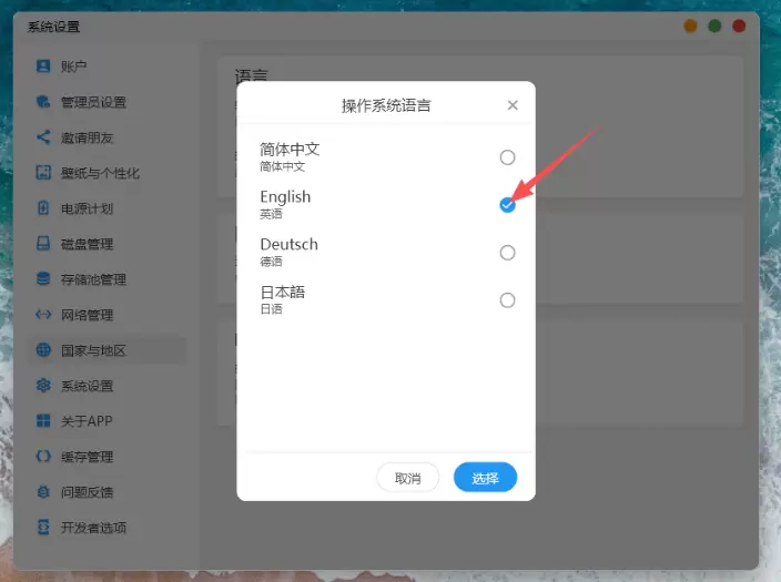 1.登录软件连接好NAS,找到国家与地区中的“语言”