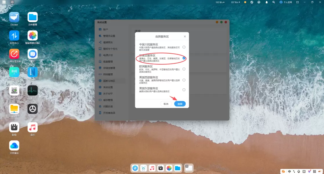 点击确认,找你自身所在的大概区域(我们以东南亚为列),点击确认等待完成即可。