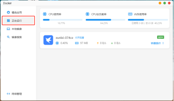 在“正在运行”中可以看到容器的状态。