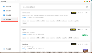 “本地镜像”可以看到已经下载了的Docker容器镜像,“镜像搜索”可以搜索下载所需的镜像。