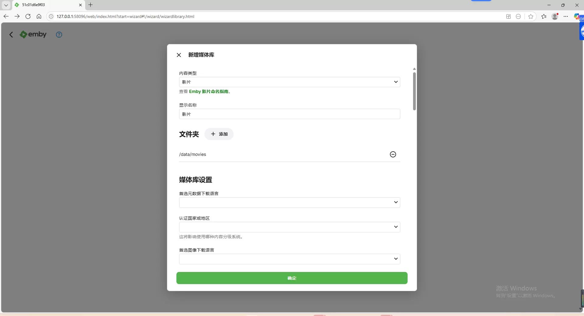 5.添加媒体库时,绑定NAS中的视频文件夹