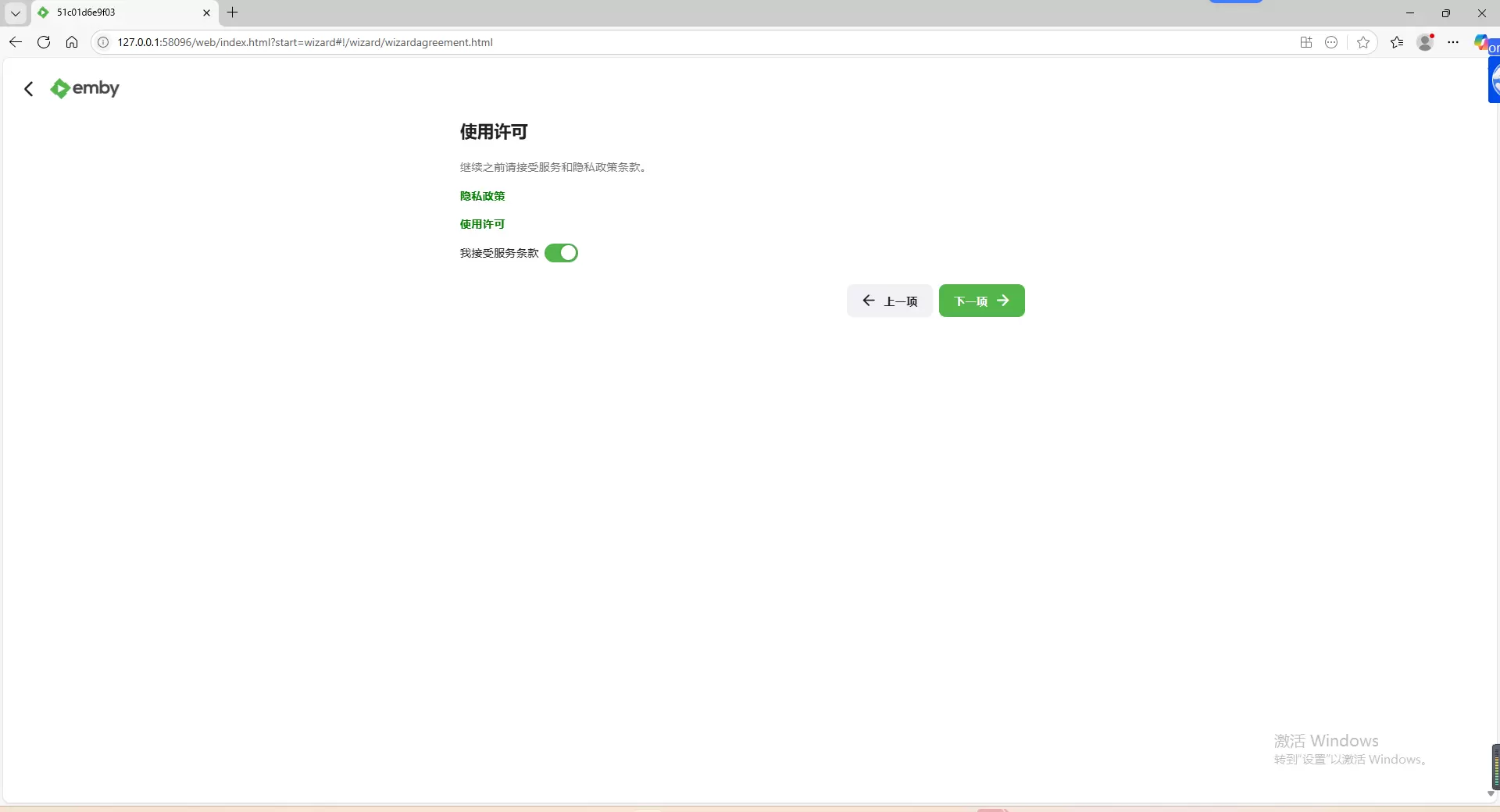6.最后选择同意使用许可就完成了Emby的初始化设置
