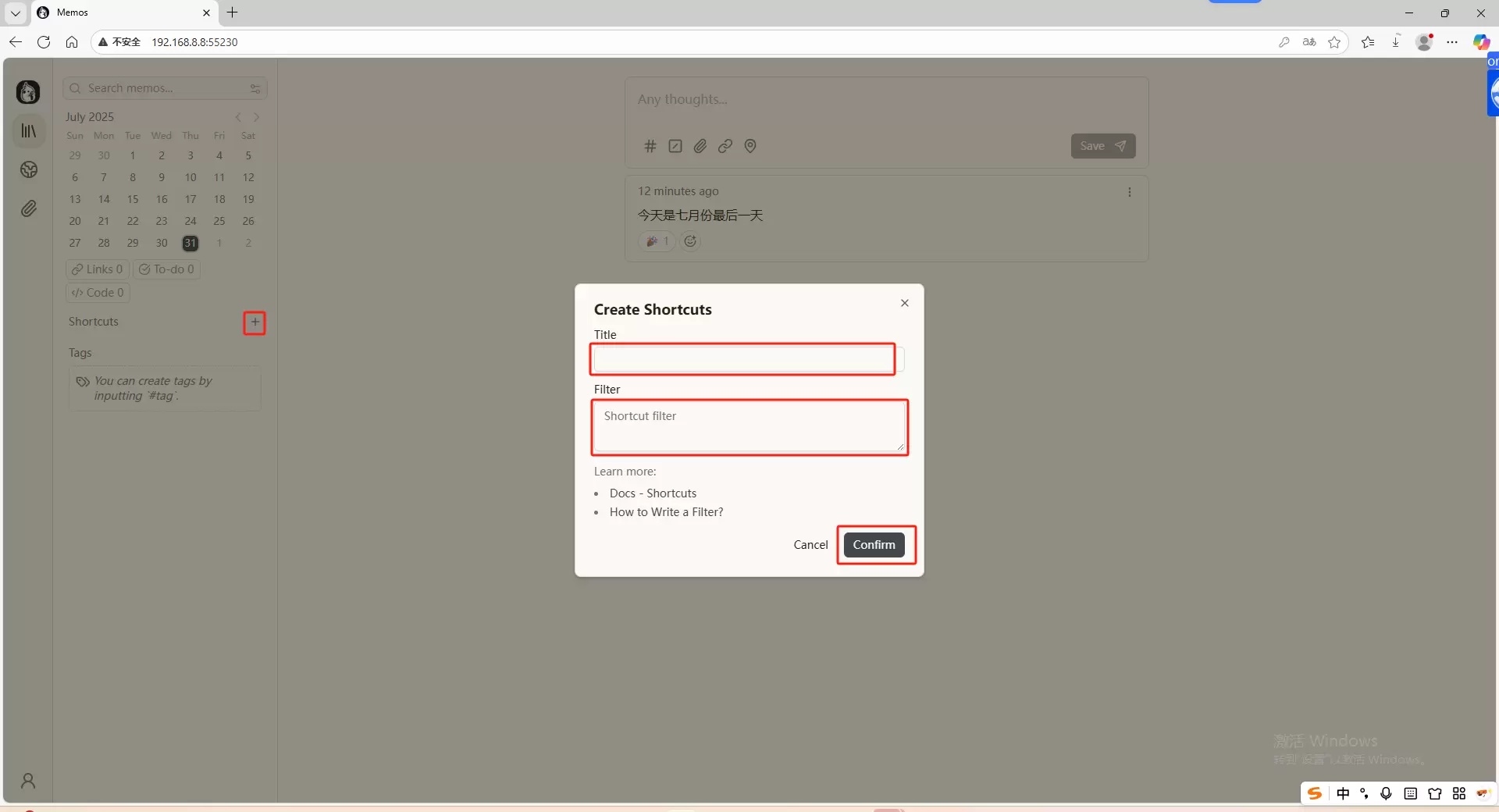 如何创建快捷方式和编写过滤器:可查看教程:备忘录 - 开源、自托管笔记 - 备忘录