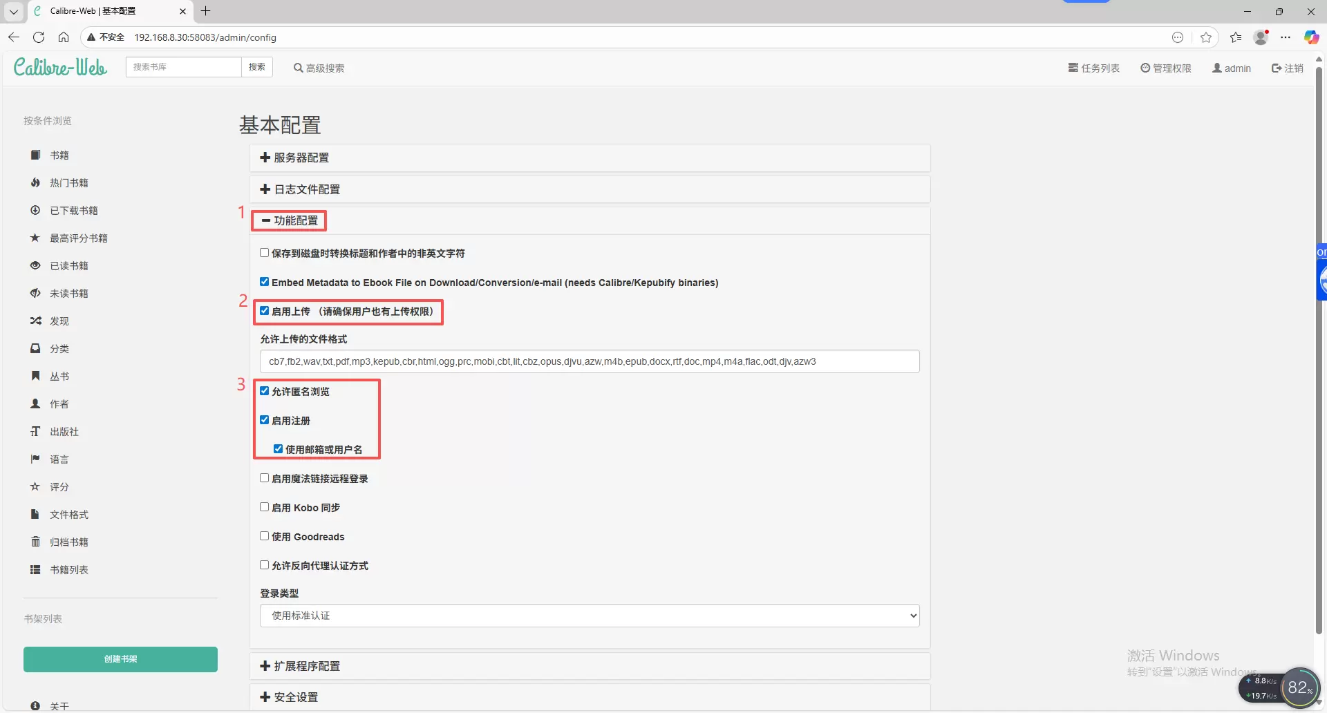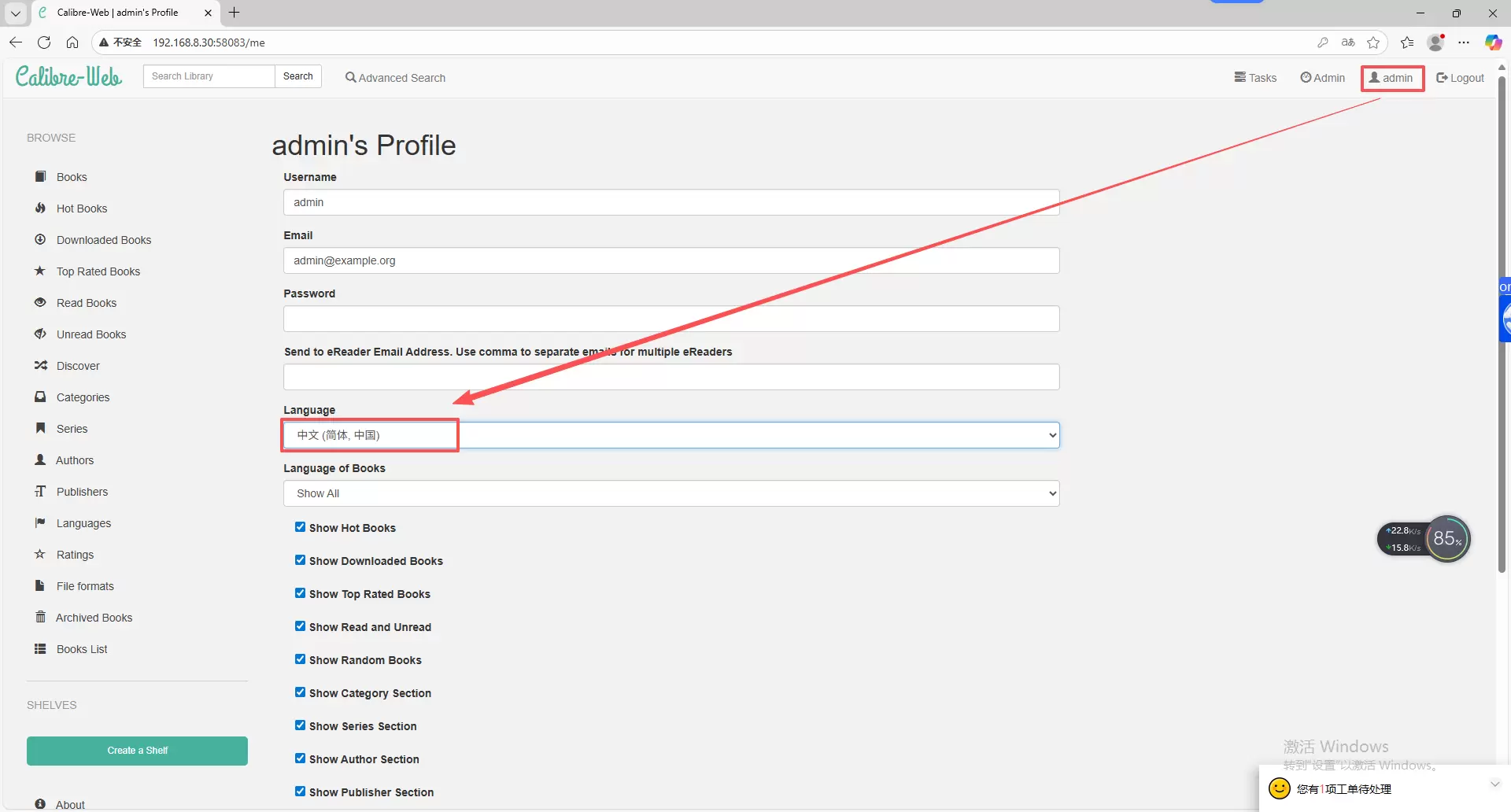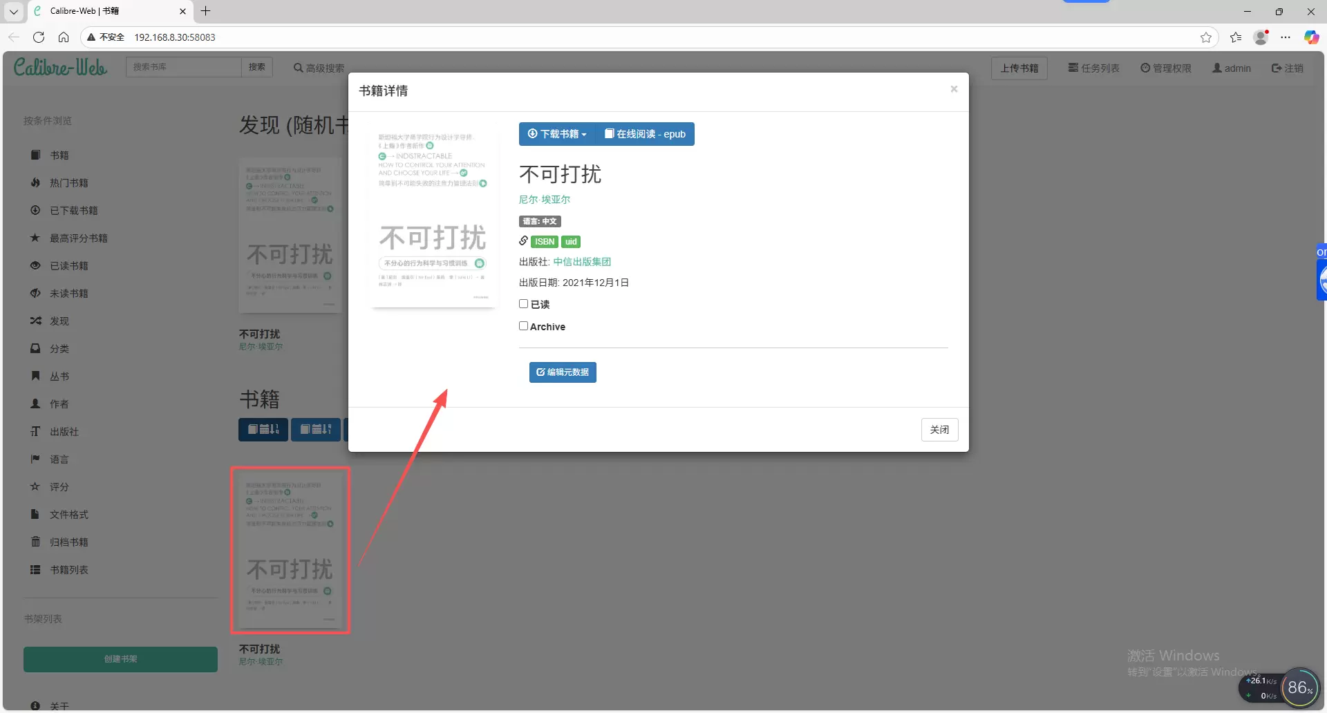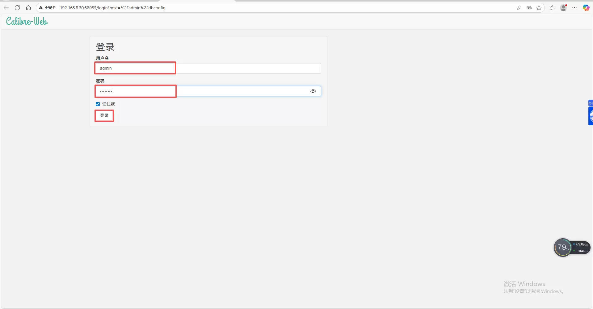 输入默认账号密码,点击登录进入Calibre-Web主页面