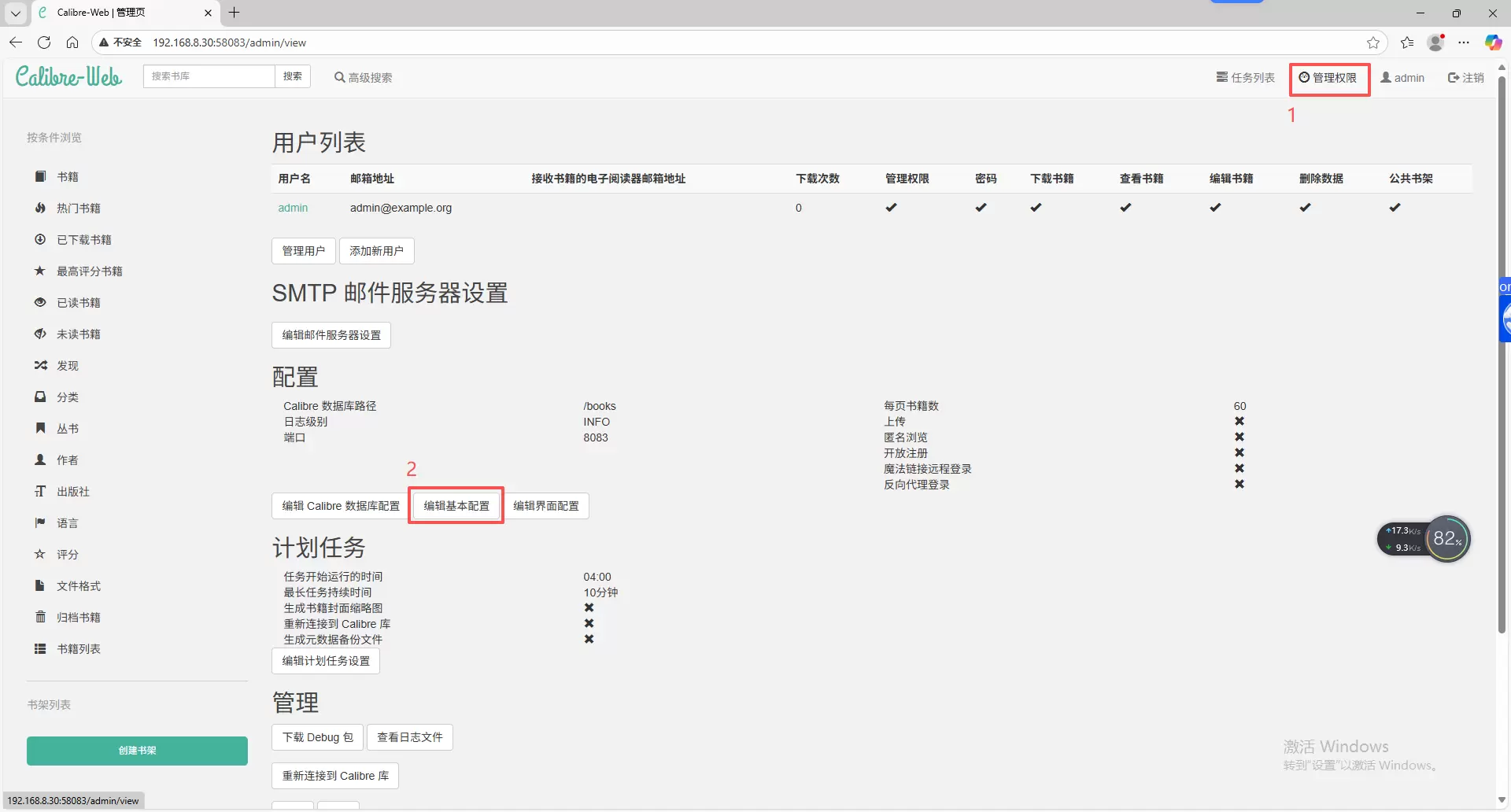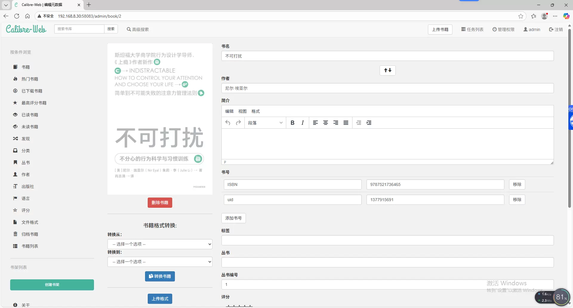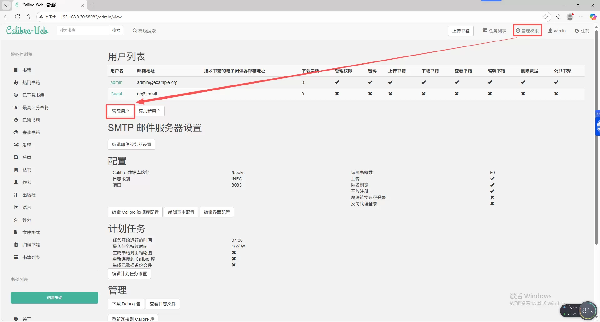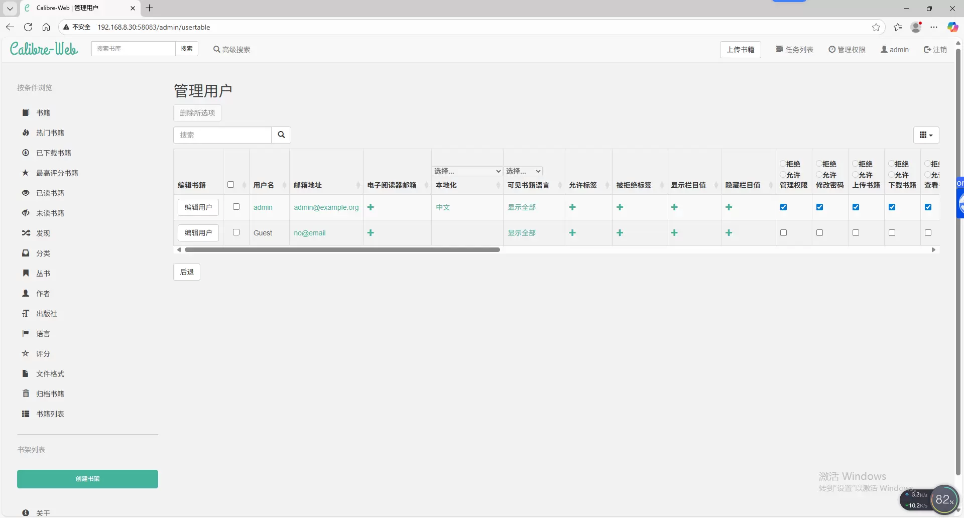 输入默认账号密码,点击登录进入Calibre-Web主页面