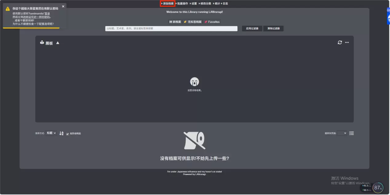 点击上方“添加档案”,“从您的计算机添加”选择需要上传的动漫、漫画等