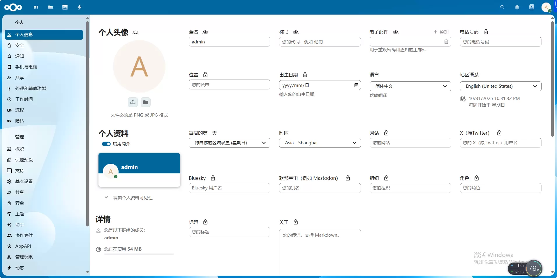5、点击右上角“个人设置”进入个人信息页面,可编辑自己的个人信息