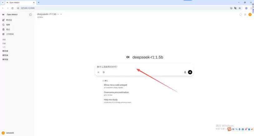 deepseek-r1:1.5b为例进行说明。在搜索框输入“ollamarundeepseek-r1:1.5b”,再点